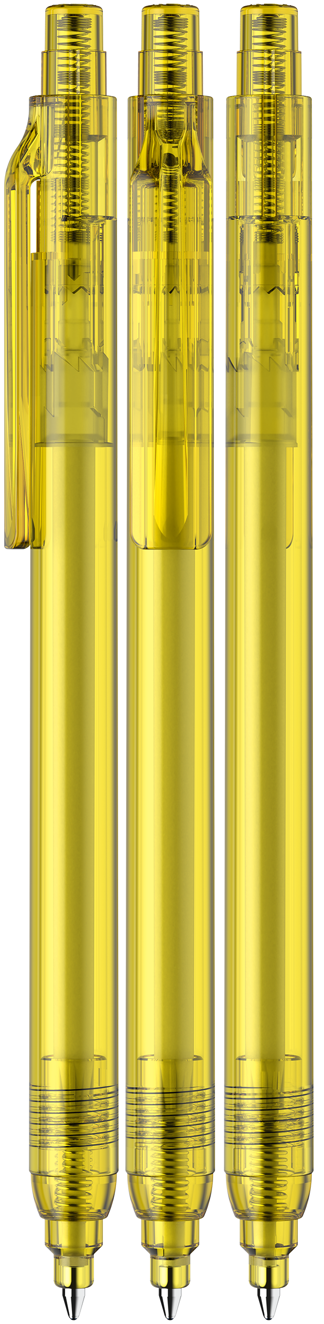 Retractable ballpoint pen available in transparent or opaque plastics.