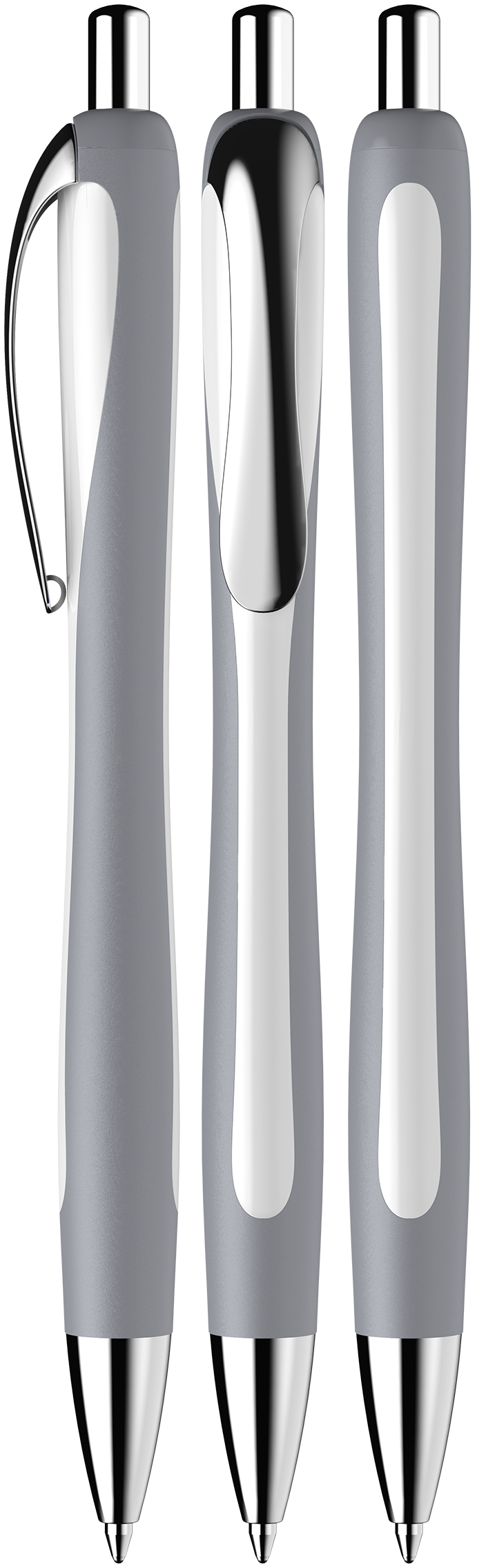 Ergonomically shaped, rubberised barrel. Metal clip and tip.