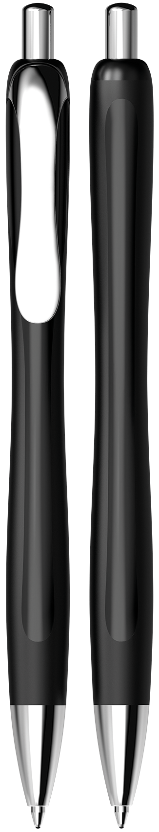 Ergonomically shaped, rubberised barrel. Metal clip and tip.