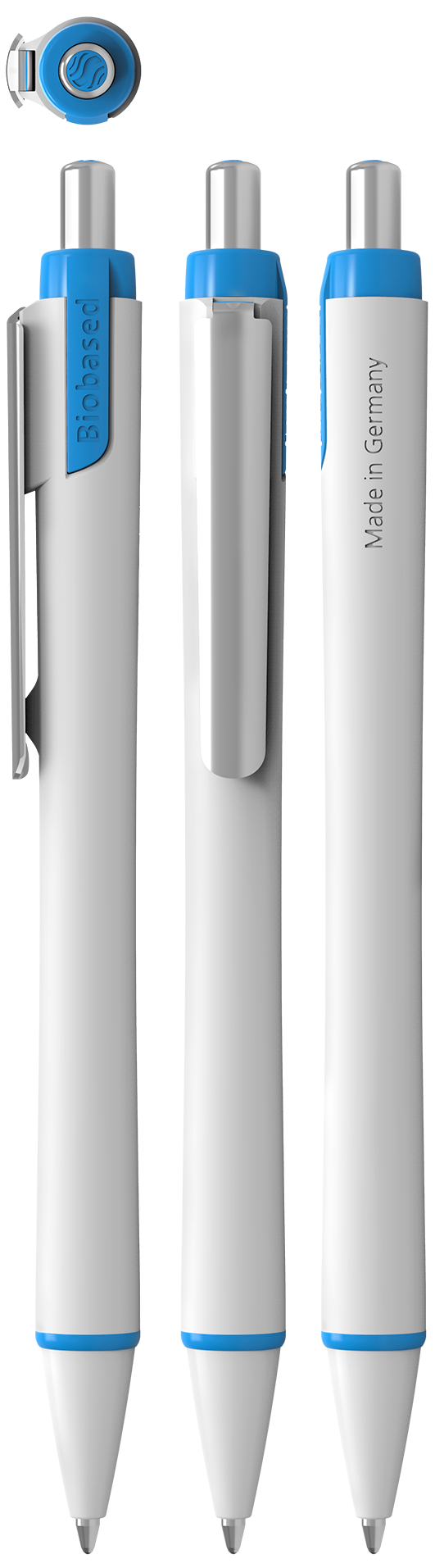 Ballpoint pens with push button with white pen body made of 70% bio-based plastic material. The Viscoglide®-Technology for extraordinarily smooth and gliding writing.