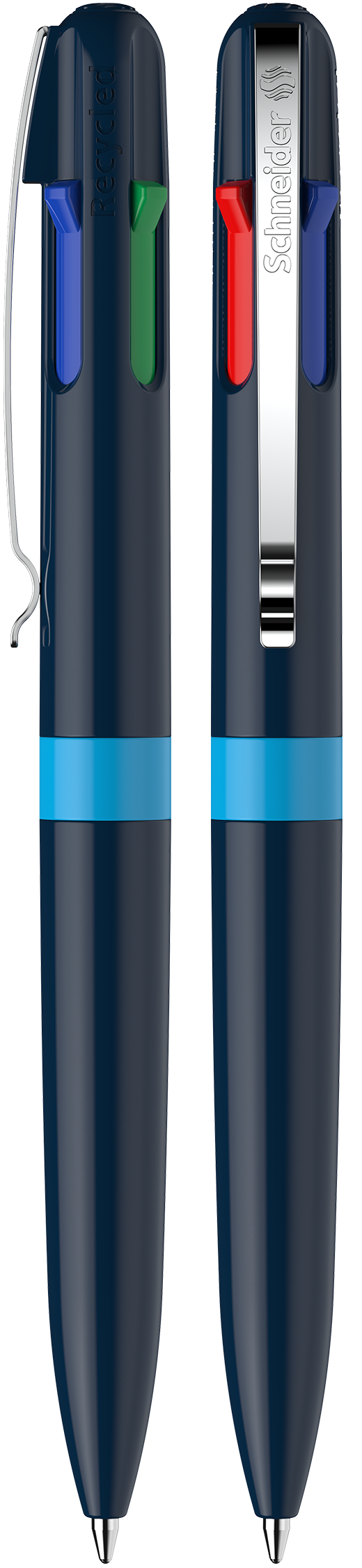 Four colour ballpoint with the writing colours black, red, blue, green. Pen body made of 92% recycled plastic.