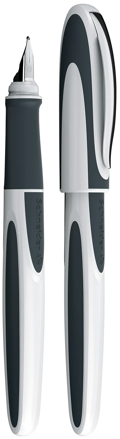 Ergonomically rubberised grip profile. Cap with sturdy stainless steel clip. Standard ink cartridges, royal blue, erasable.