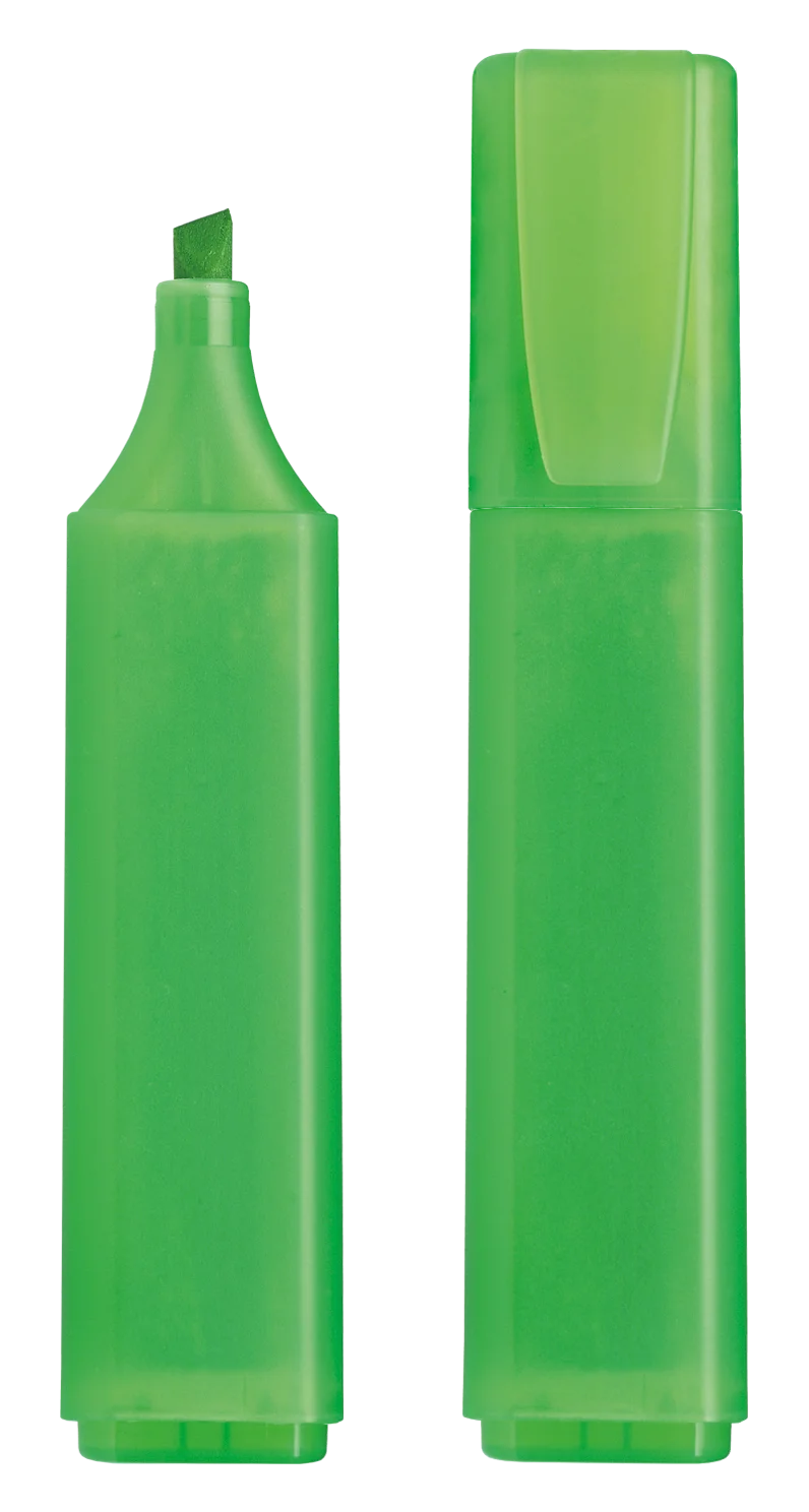 Highlighter made of transparent plastic with a fine matt finish.