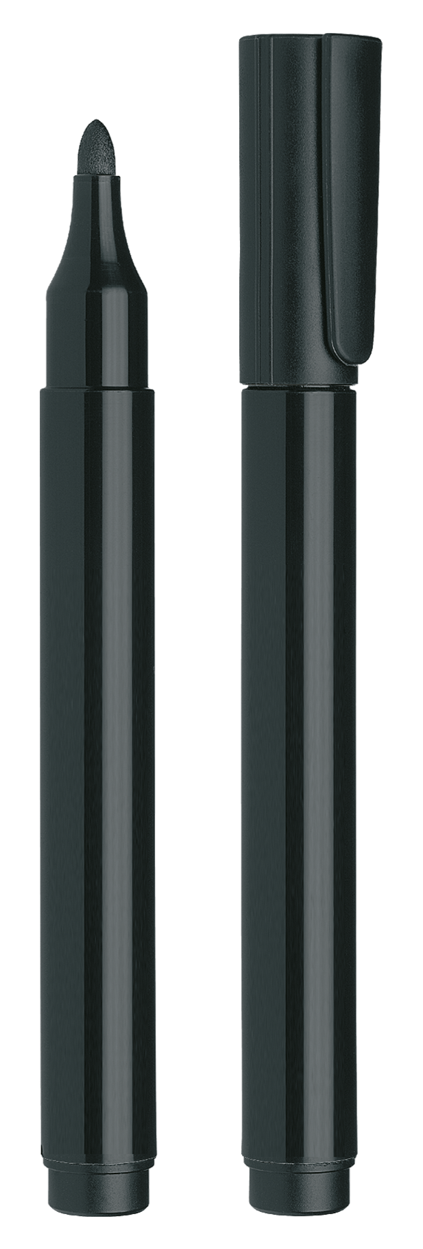 Marqueur permanent en plastique opaque avec finition brillante. Corps composé de > 95 % de plastique recyclé, réservoir d'encre à l'intérieur en fibres recyclées à 75%.