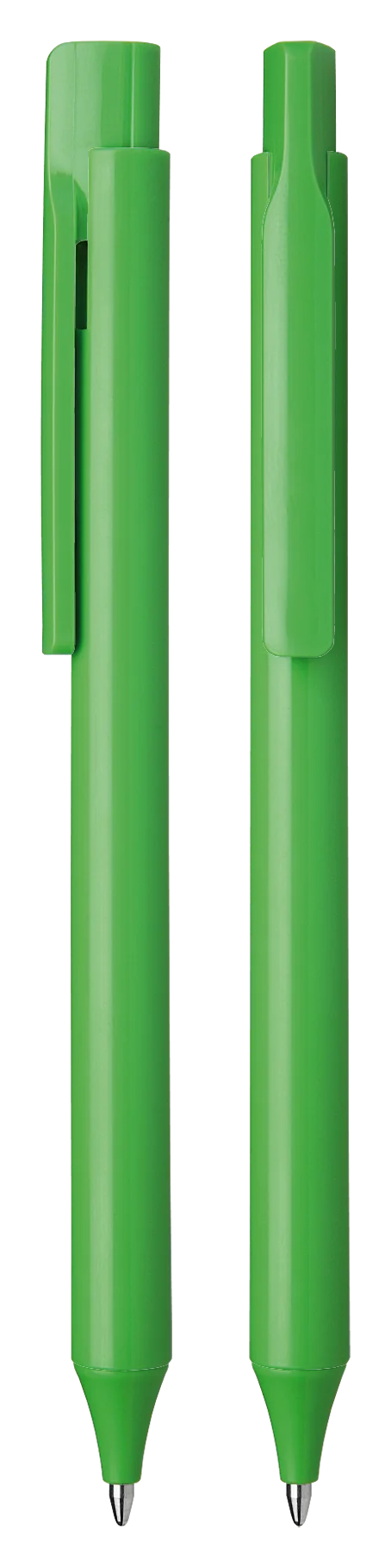 Stylo à bille rétractable en plastique transparent ou opaque.