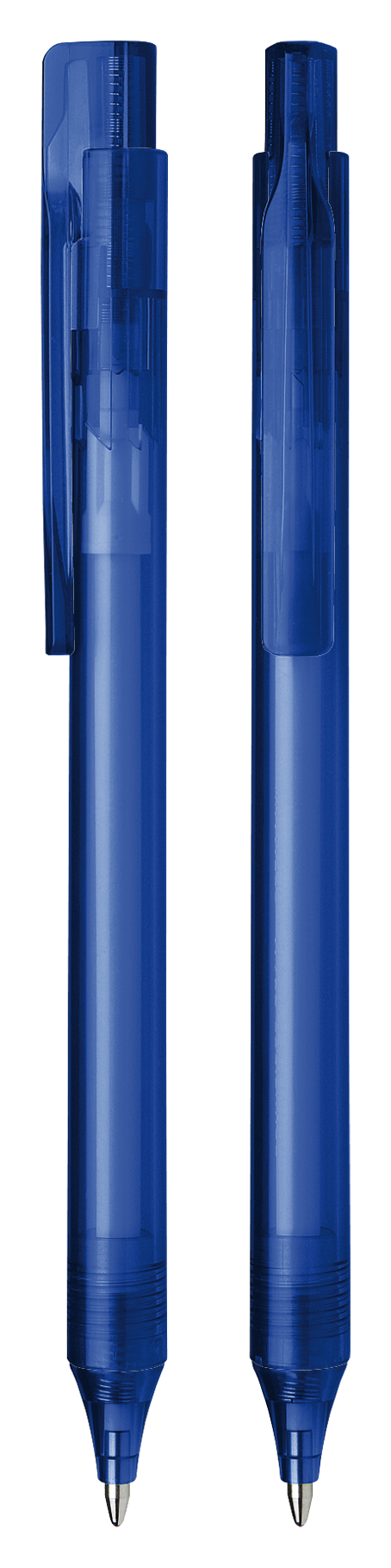 Stylo à bille rétractable en plastique transparent ou opaque.