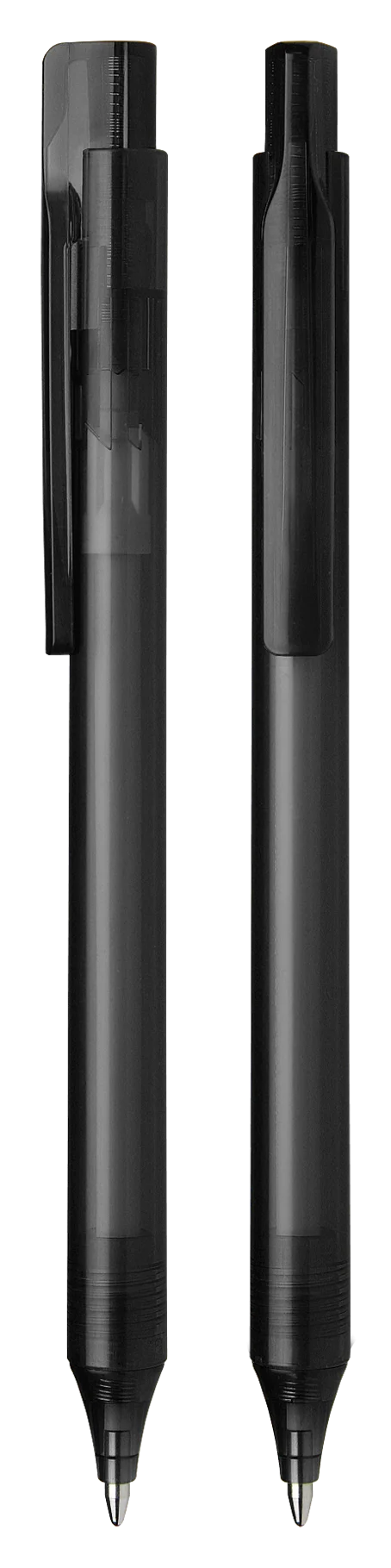 Stylo à bille rétractable en plastique transparent ou opaque.