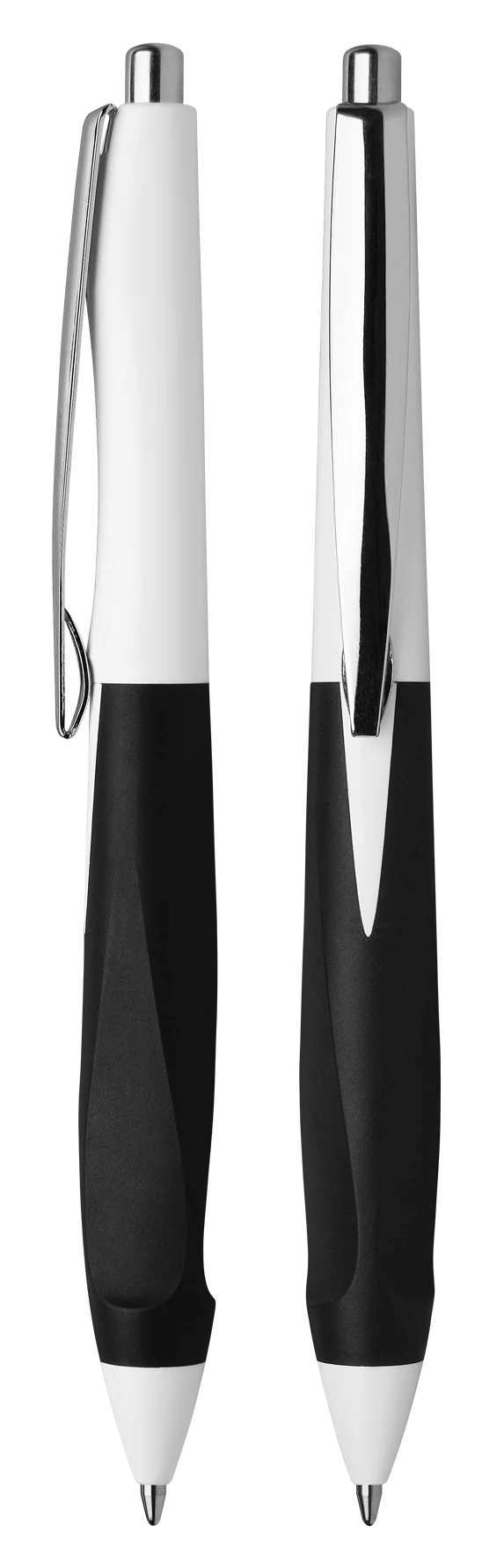 Stylo à bille rétractable en plastique transparent ou opaque avec finition brillante.