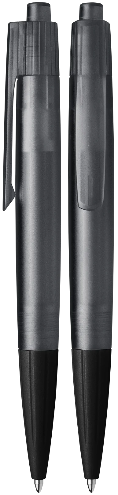 Stylo à bille rétractable avec surface givrée en plastique transparent, disponible en 12 couleurs fraîches.