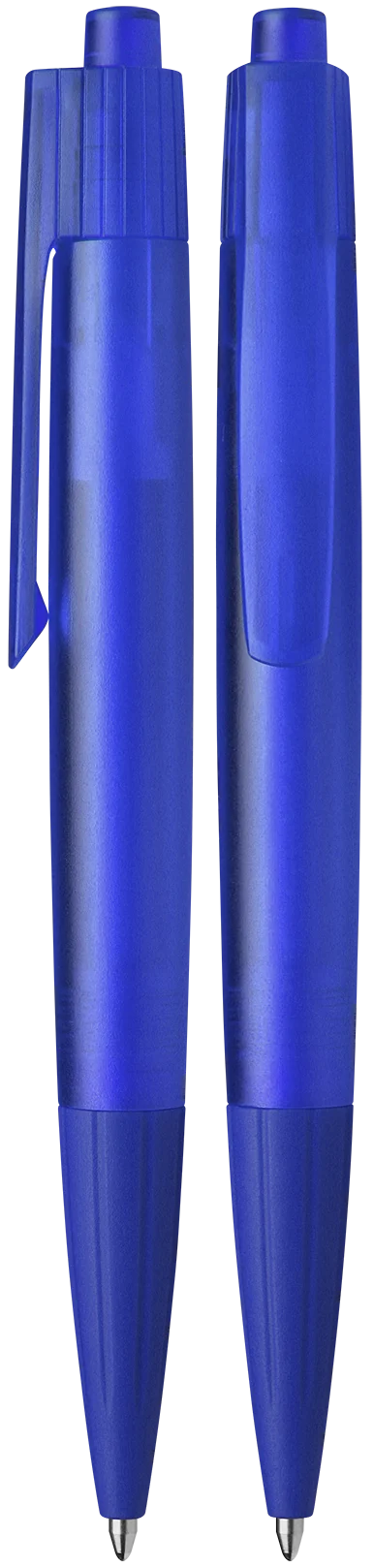 Stylo à bille rétractable avec surface givrée en plastique transparent, disponible en 12 couleurs fraîches.