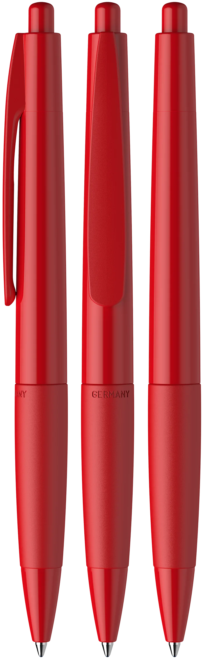 Stylo à bille rétractable en plastique opaque avec surface brillante. Corps fabriqué à 60 % de matériau recyclé.