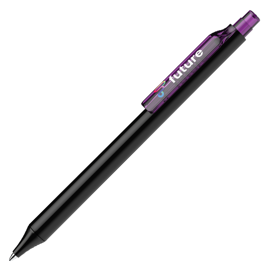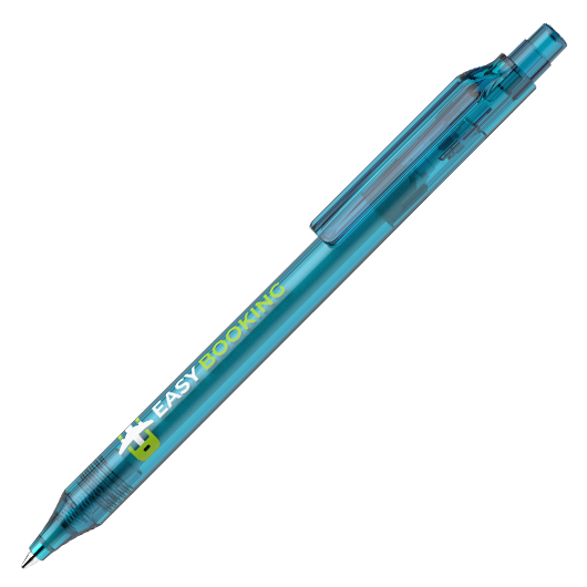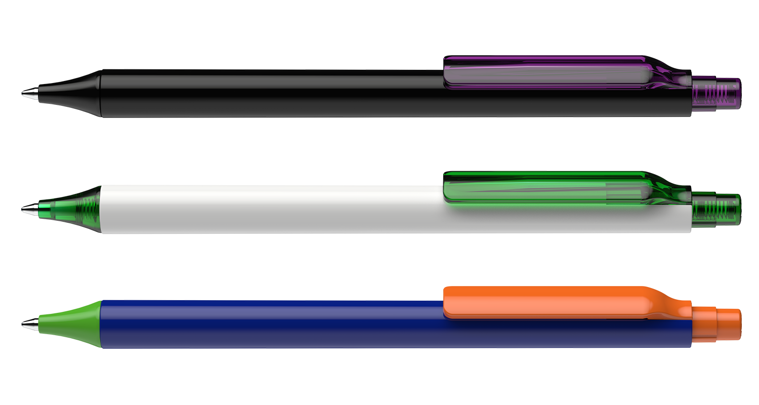 Stylo à bille rétractable en plastique transparent ou opaque.