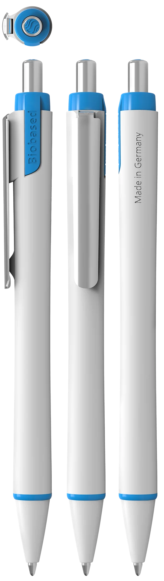 Stylo à bille rétractable, corps blanc, composé de 70 % de bioplastique. La technologie Viscoglide® assure une écriture extraordinairement douce et fluide.